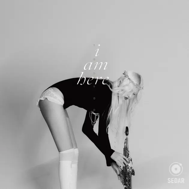 封面上陶玙拿的是 高音萨克斯 (Soprano Saxophone),弯着腰,在她的背上写着 i am here ,既是专辑的名称,又像是一句话,说「我」在这里。