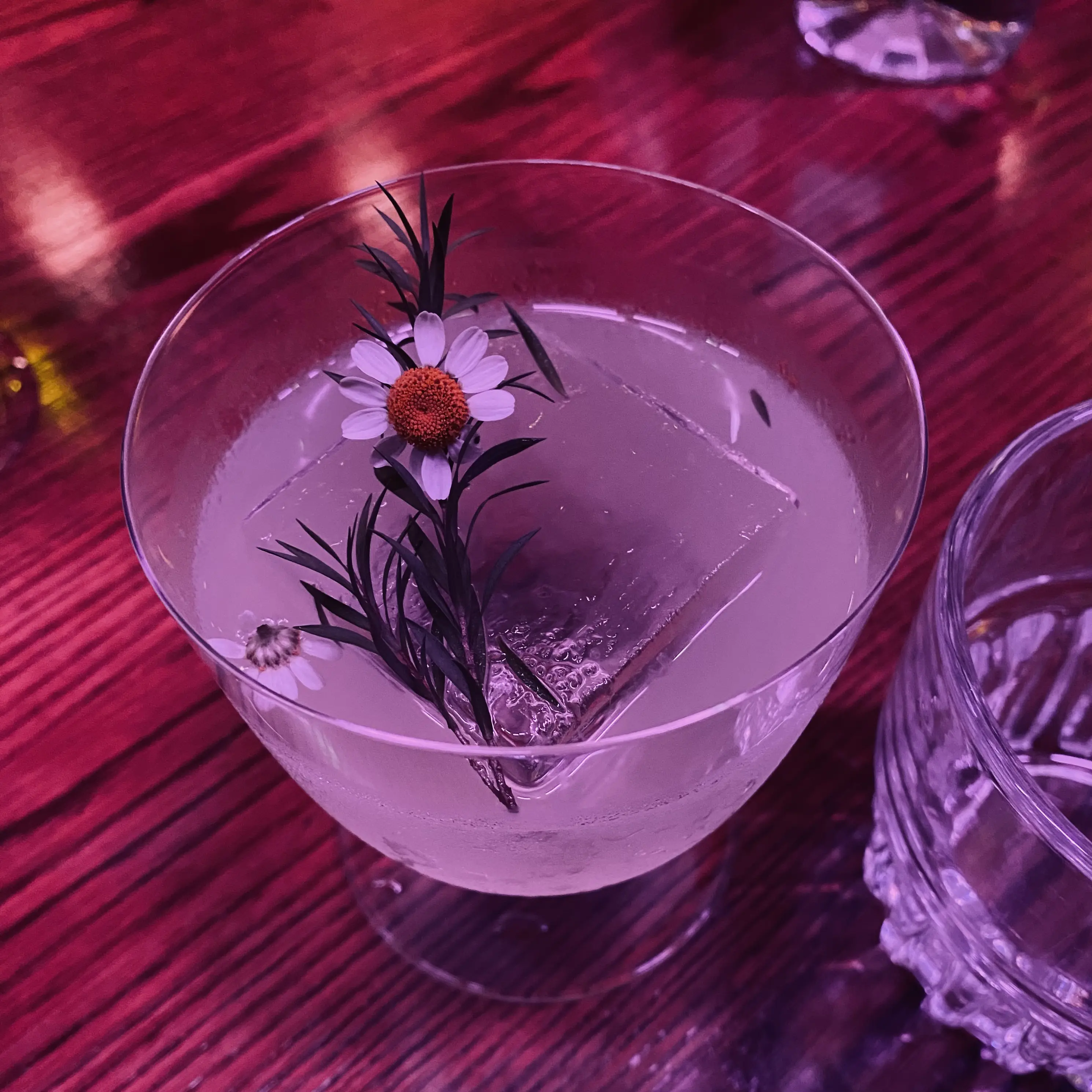 酒吧入座是有最低消费的,至少要点杯饮料。翻开菜单我就看上了一款酒 ⸺ 「柔和爵士」⸺ 大概是名字比较吸引我。「柔和爵士」的组成是金酒、佛手柑香酒、柠檬汁、栀子花糖、青瓜糖,酒精度大概是 17 %VOL。这款酒我挺喜欢的,闻起来和尝起来都有浓郁的香味,杯子里装的仿佛不是酒,而是一杯香水,甜口、酒精味不明显,余味有点像 RIO 预调酒,不过度数不低,喝几口我就觉得有点上头了。酒里放了一块很大的方形冰块,很耐久,一个多小时都没化完,要是家里冻的小冰块一下子就化完了,如果家里能制作这样的冰块,夏天搭配手冲咖啡肯定很不错。这是我第一次在酒吧里听纯器乐的爵士乐,既能享受精彩的演奏,又能享受好喝的调酒,还蛮喜欢的。