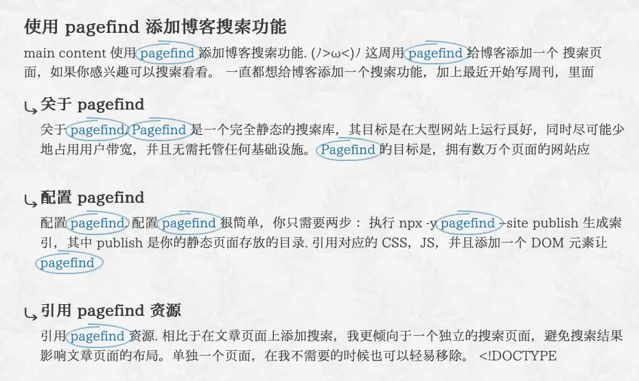 npx -y pagefind --site publish生成索引,其中publish是你的静态页面存放的目录 - 引用对应的 CSS,JS,并且添加一个 DOM 元素让 pagefind 挂载